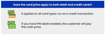 Just like a Gas Station your Business can offer both a card price and cash price with our Dual Pricing Software available on all our card processing equipment